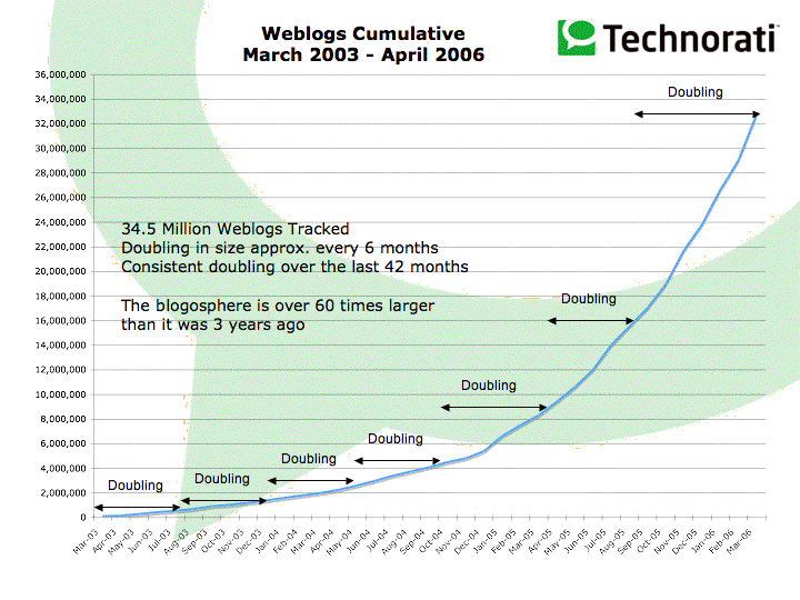 When blogs became popular in 2002, they were thought by many to be just another of the fad's Koenig refers to. David Sifry's latest State of the Blogosphere shows the opposite trend, sustained growth for blogs on the public web: