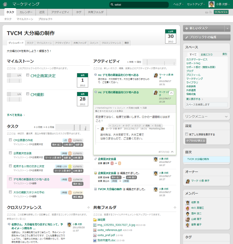 TeamPage は、ブログ スタイルのコミュニケーション、Wiki スタイルの共同編集、Twitter スタイルの近況アップデート、ダッシュボード、ディスカッション スレッド、タスク&プロジェクト管理、タグによるコンテンツの分類、活動記録、プロフィール、ファイル管理、そして検索がひとつになった、ソーシャル コラボレーション環境です。ビジネスに必要な機能を、魅力ある形で、信頼性と安全性の上に統合しています。